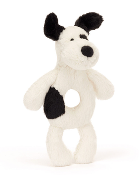 Bashful Black & Cream Puppy Ring Rattle RR4BCP